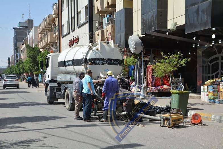 استمرار الحملات اليومية لتنظيف و تسليك خطوط المجاري في احياء كربلاء