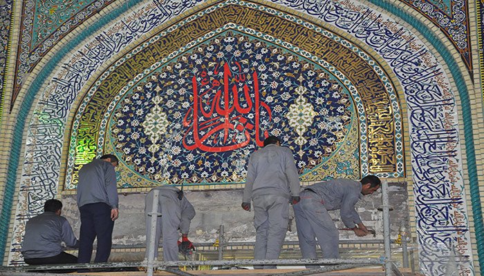 انجاز نصب الوحة الخاصة بالمذبح المقدس داخل الصحن الحسيني الشريف