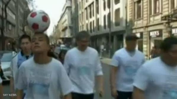 محتج مكسيكي يسير 56 يوما بكرة على رأسه