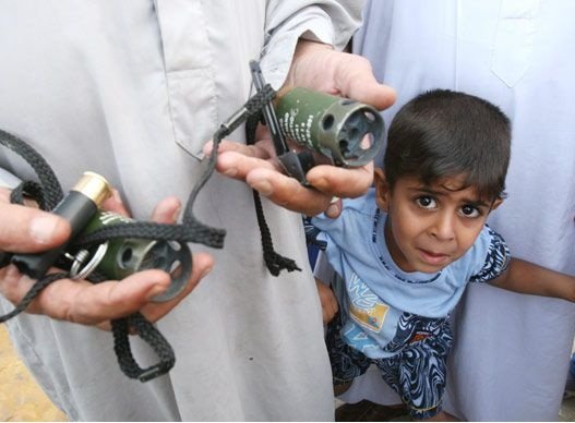 اب يربي ابنائة بالقاء القنابل عليهما !!
