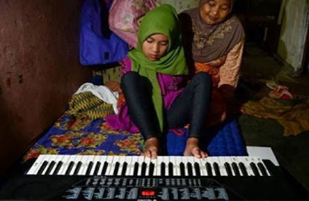 طفلة أندونيسية بلا ذراعين تعزف البيانو بقدميها