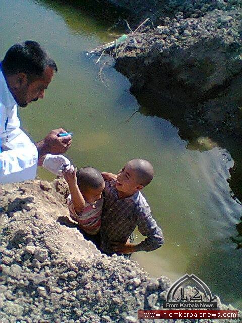 طفل يرمي نفسه في بركة مياه هربا من لقاح شلل الاطفال في الديوانية