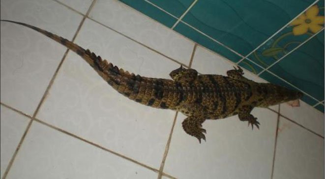 هندي يعثر على تمساح عملاق في مرحاض منزله