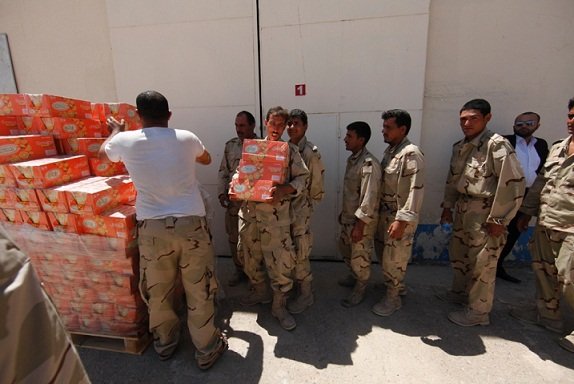 العتبة الحسينية المقدسة تدعم الجيش العراقي بتوزيع المواد الغذائية في المعسكرات