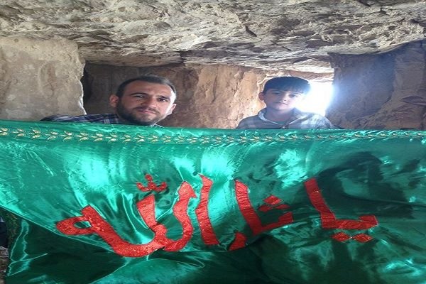 منتسب في العتبة الحسينية المقدسة ينصب راية الإمام المهدي على طريق (كربلاء- عرعر) أملاً باستقباله