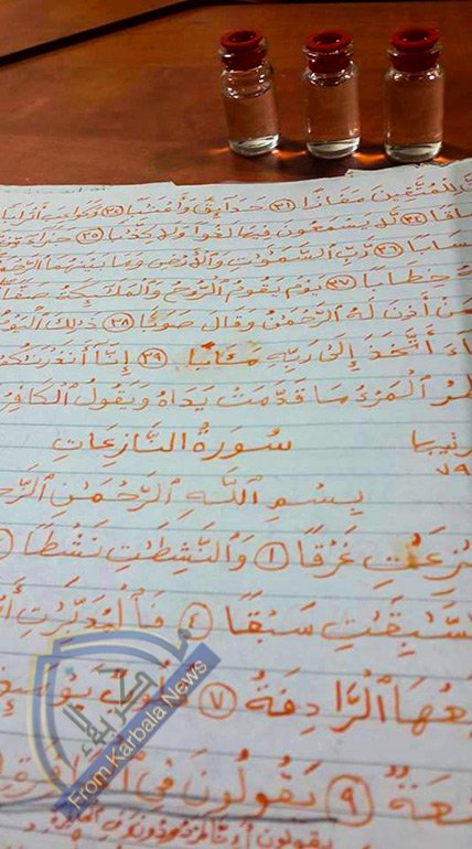 بصرية تكتب القرأن بورق غسل بماء زمزم