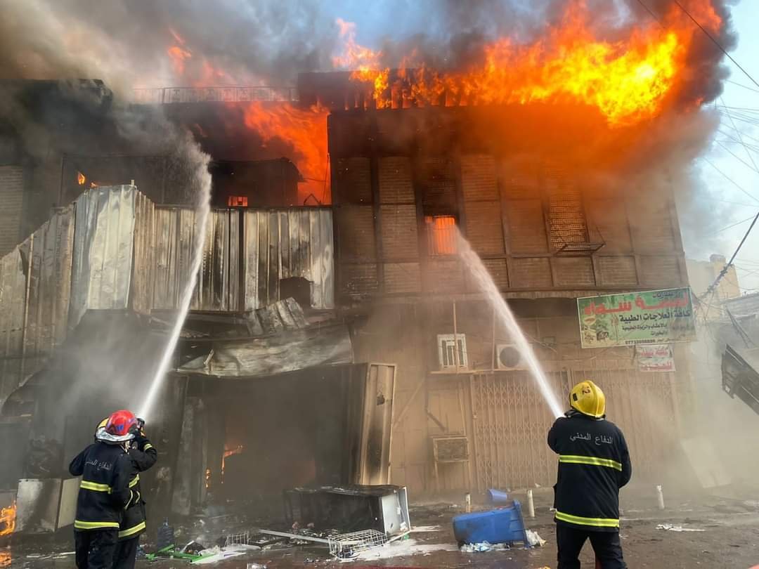 الدفاع المدني يخمد حريقاً داخل سوق الشورجة في بغداد