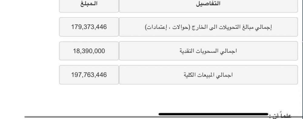 وطبقًا للجدول الذي ورد لـ "بغداد اليوم"، فإن "معظم المبيعات من الدولار ذهبت لتعزيز الأرصدة في الخارج على شكل (حوالات، اعتمادات) وبواقع 187 مليوناً و265 ألفاً و896 دولاراً، فيما ذهبت البقية البالغة 12 مليوناً و 640 الف دولار على شكل مبيعات نقدية".