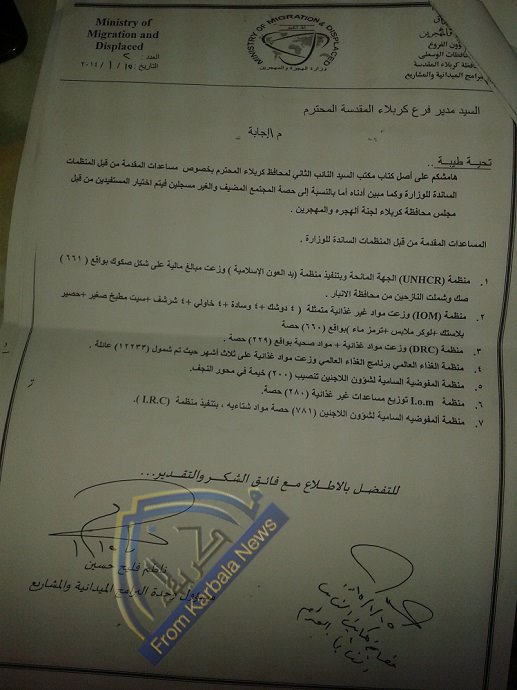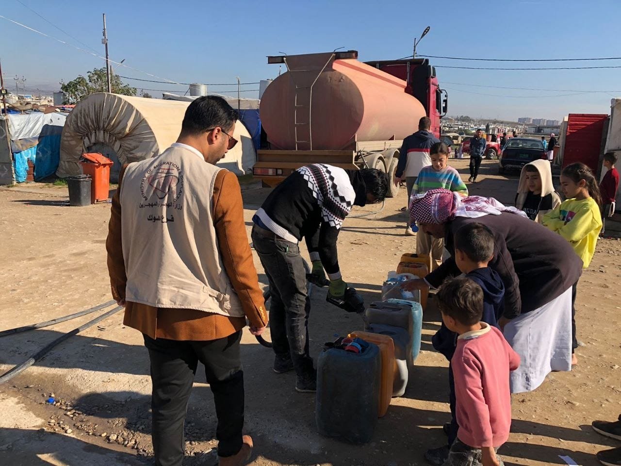 وأوضح البيان، ان "فريق عمل الوزارة شمل (605) أسرةً نازحةً في المخيم وبواقع (50) لتراً من مادة النفط الأبيض لكل اسرة".