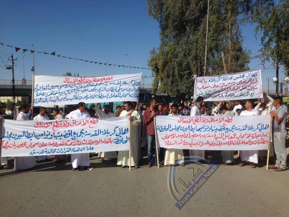 سائقو الشاحنات يتظاهرون في كربلاء للمطالبة بإلغاء الرسوم عليهم والمحافظة تؤكد:ملتزمون بتنفيذها