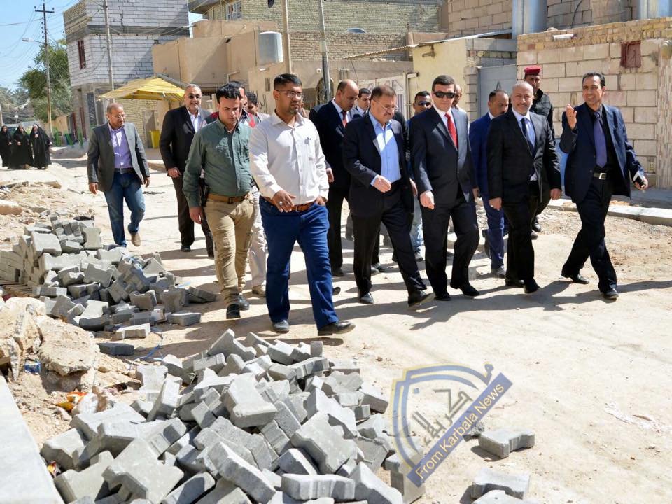 جولة تفقدية لمحافظ كربلاء شملت زيارة لمشروع اعادة تاهيل واكساء طرق حي العامل المنطقة الاولى