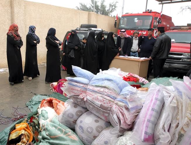 وصول شاحنتين من الموصل محملتين بمواد غذائية وإنسانية لنازحي الفلوجة في هيت