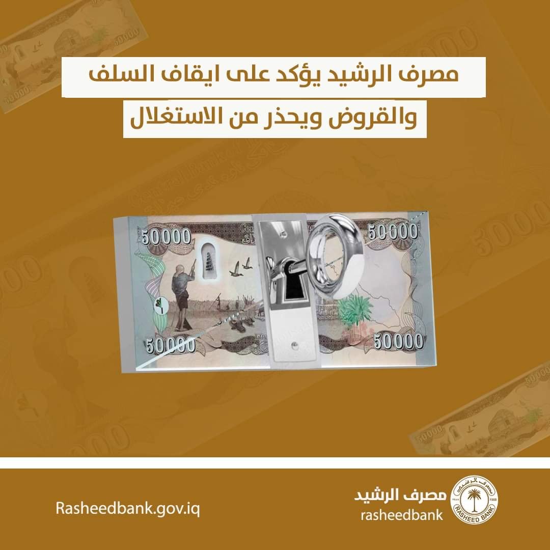 مصرف الرشيد يعلن إيقاف القروض والسلف