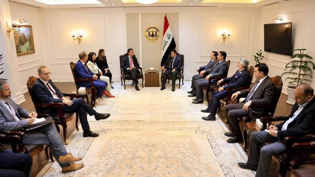 بحث مستشار الأمن القومي، قاسم الأعرجي، بمكتبه اليوم الثلاثاء، مع وفد من البرلمان الألماني، برئاسة نيلس شميد العلاقات العراقية الألمانية وسبل تعزيز التعاون في المجالات التي تخدم البلدين.