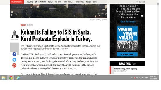 صحيفة ديلى بيست : رفض أردوغان الدفاع عن كوباني يهدد بحرب أهلية فى أنحاء تركيا