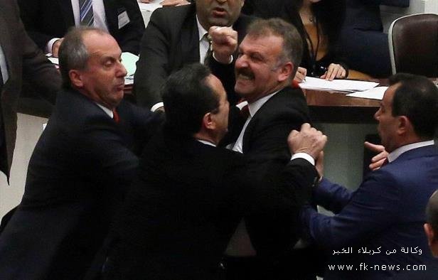 بالصور ... برلمان تركيا يتحول إلى "حلبة ملاكمة" بين نواب الأغلبية والمعارضة
