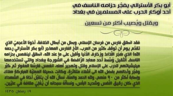 منفذ الهجوم الانتحاري في العراق الأسبوع الماضي أسترالي الجنسية