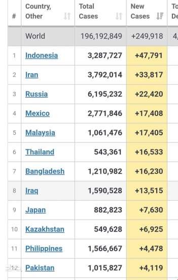العراق يحتل المركز 8 على مستوى العالم بعدد الاصابات اليومية بكورونا