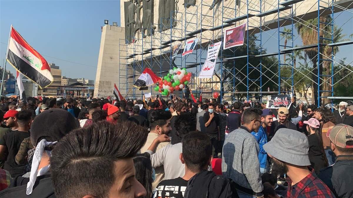 تجمهر عشرات المتظاهرين، أسفل نصب الحرية في ساحة التحرير، وسط العاصمة العراقية بغداد، فيما انتشرت القوات الأمنية بشكل كثيف في محيط الساحة لتأمين الحماية للمتظاهرين.