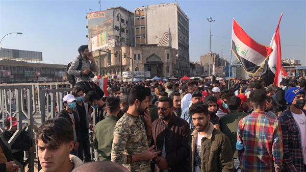 العشرات يتجمهرون في قلب بغداد