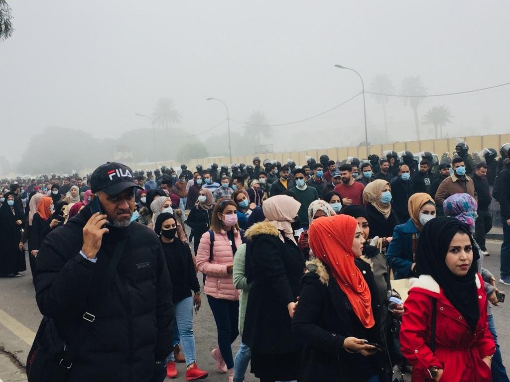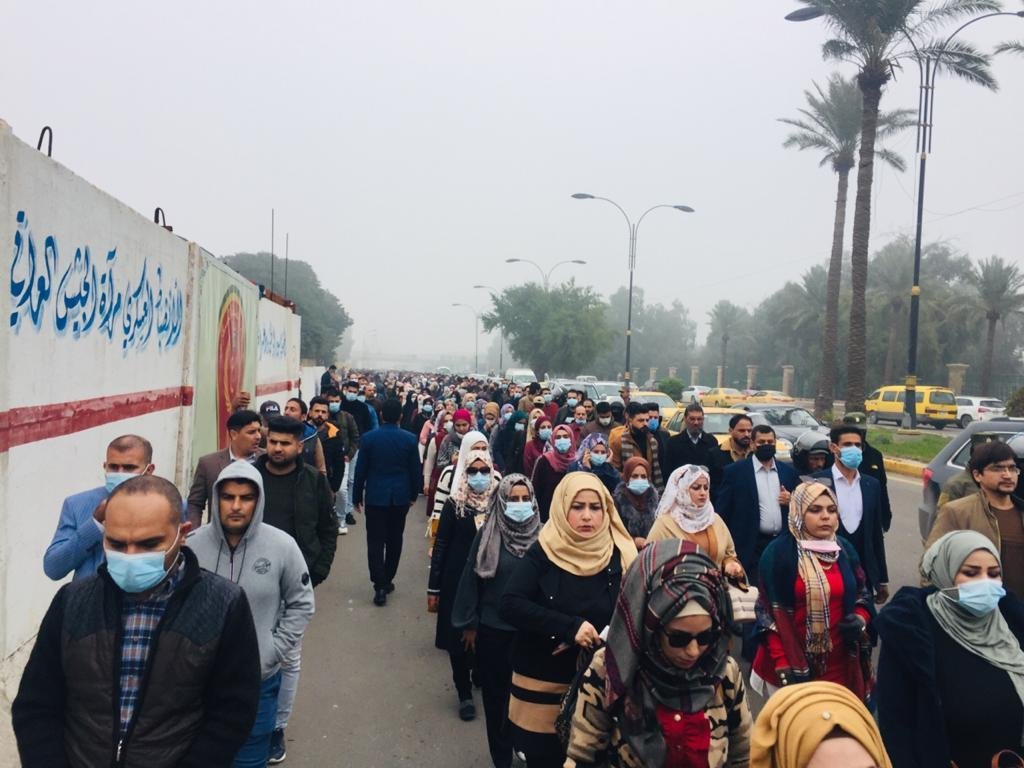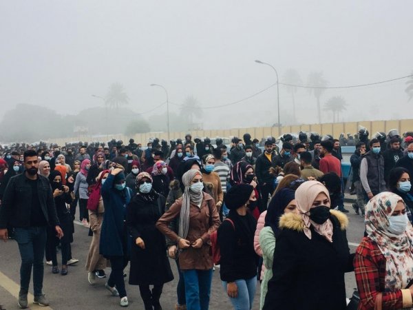 نظم المئات من حملة الشهادات العليا، اليوم الخميس، مسيرة احتجاجية ابتداءً من منطقة العلاوي باتجاه ساحة معرض بغداد الدولي.