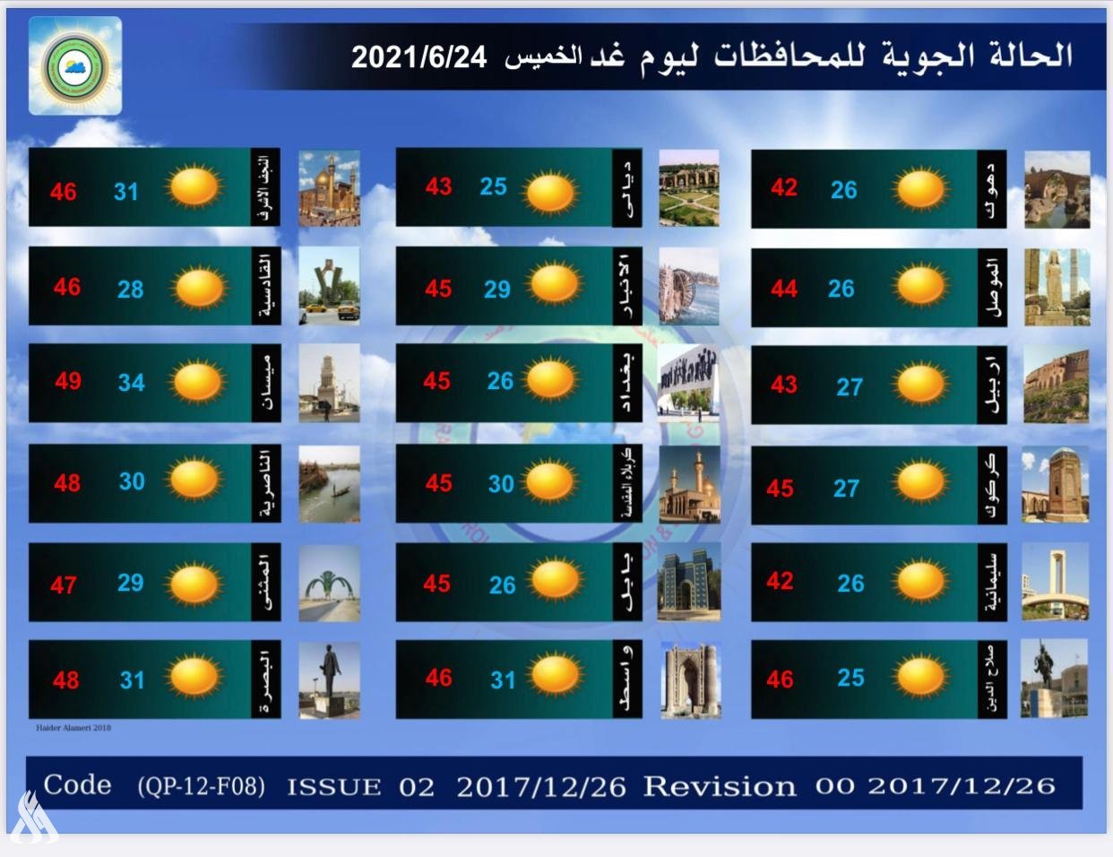 الأنواء الجوية: محافظة عراقية تقترب إلى نصف درجة الغليان غداً