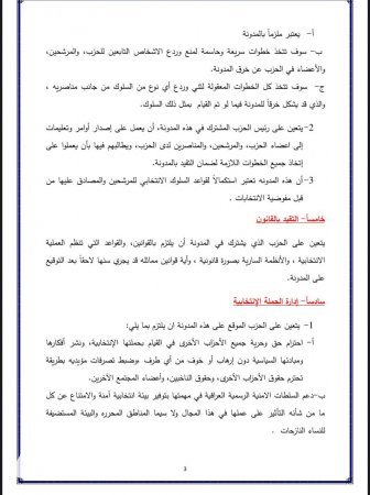 وألزمت مدوّنة السلوك الانتخابي المفوضية بإعلان نتائج الانتخابات الأولية خلال 24 ساعة واشترطت على الأحزاب عدم التدخل بمهام المفوضية أو استخدام موارد الدولة.