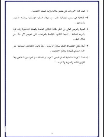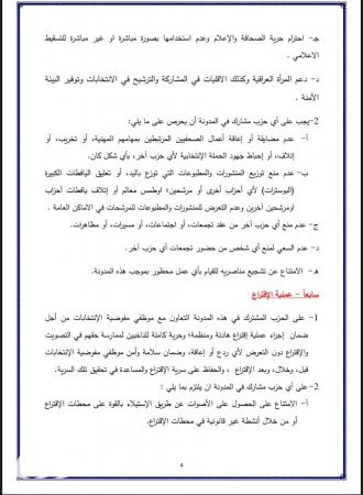 نص مدونة السلوك الانتخابي
