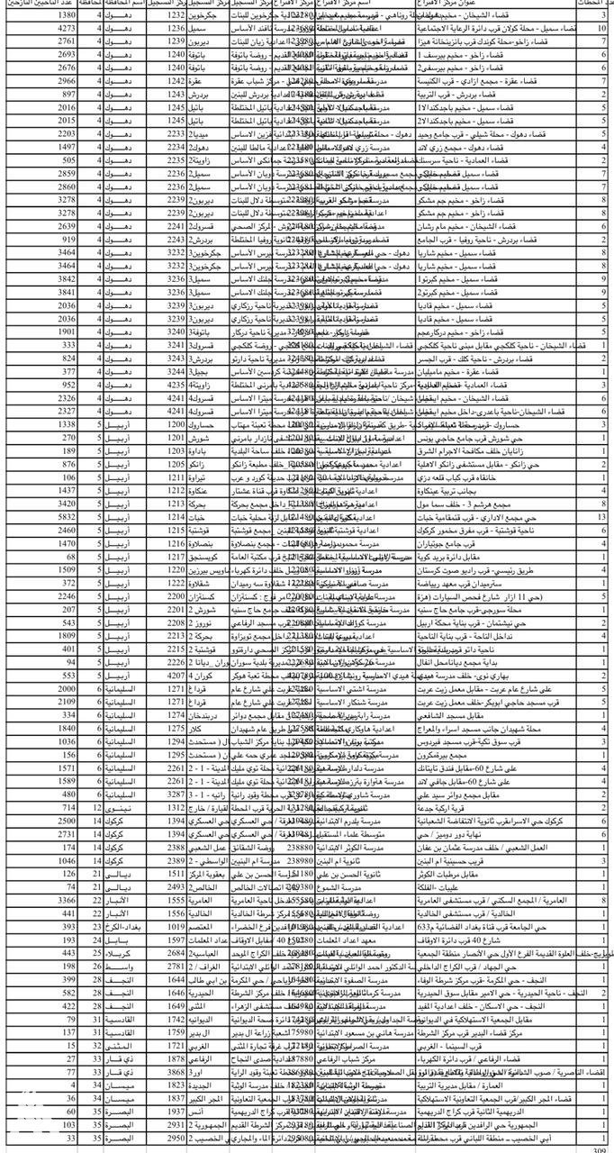 نشر مصدر صحفي اليوم الأحد، عناوين مراكز الاقتراع الخاصة بالناخبين النازحين. وسيصوت الناخبون النازحون يوم الثامن من تشرين الاول المقبل عبر البطاقة البايومترية حصرا، بحسب ما أعلنته مفوضية الانتخابات. وأدناه عناوين مراكز الاقتراع: