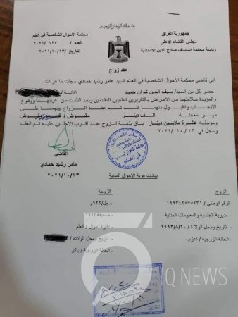سجلت محكمة الأحوال الشخصية في العالم، التابعة لرئاسة محكمة استئناف صلاح الدين الاتحادية، حالة زواج بمهر قدره ألف دينار فقط.وأظهرت الوثيقة التي اطلع عليها مصدر صحفي أن المهر "معجله ألف دينار، ومؤجله 10 ملايين دينار".