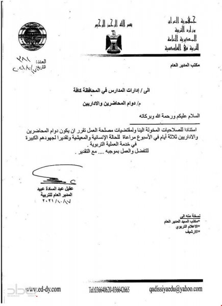 وأضاف ان "قرار المديرية جاء مراعاة للحالة الإنسانية والمعيشية للموظفين".![]()