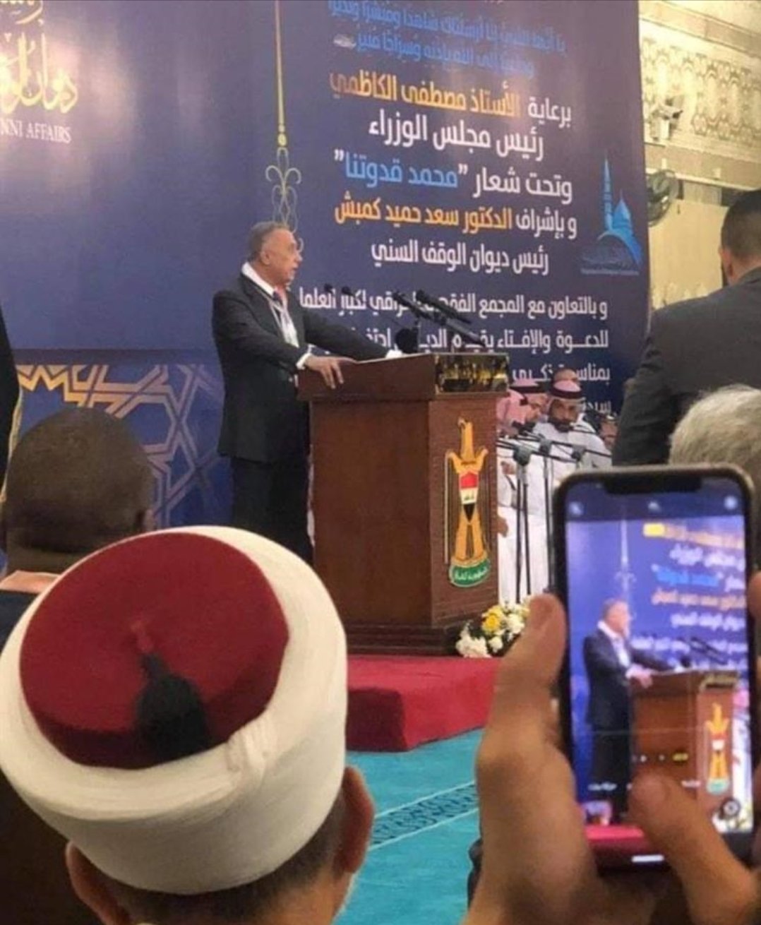حضر رئيس مجلس الوزراء مصطفى الكاظمي، اليوم الخميس، احتفالية المولد النبوي في جامع ابي حنيفة النعمان وسط بغداد.