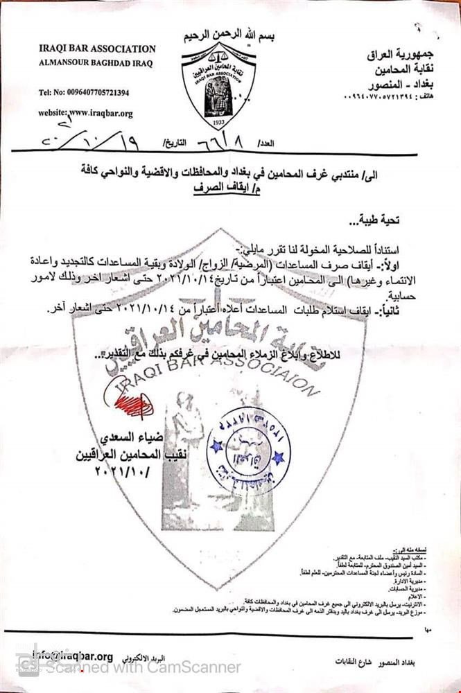نقابة المحامين توقف صرف المساعدات وترويج معاملات الانتماء