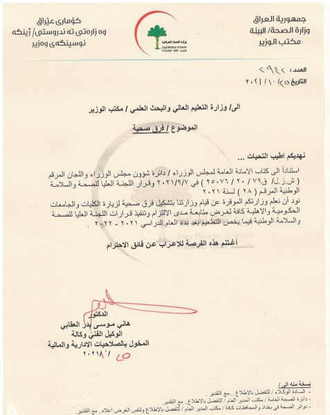 الصحة تشكل فرقاً لزيارة الكليات والجامعات الاهلية والحكومية