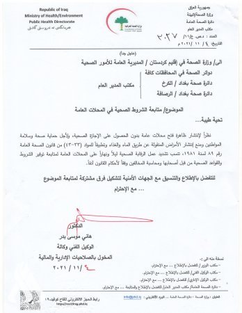وجه وزير الصحة، هاني العقابي، اليوم الخميس، بمحاسبة المحلات المخالفة للشروط الصحية.