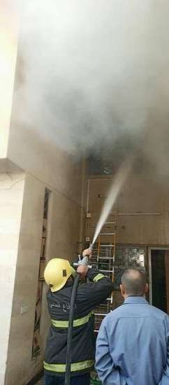 ٥ مركز البياع يخمد حادث حريق داخل غرفه طابق ثاني منطقة الدوره الحادث بسبب تماس كهربائي داخلي.