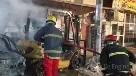 ٣ مركز الحرية يخمد حادث حريق داخل عجلة مدنية نوع كيا سيفيا مع رافعه شوكية مجاورة لها في منطقة الحرية الاولى الاسباب متعمد.