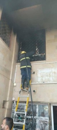 ٦ مركز الداوودي يخمد حادث حريق داخل غرفه طابق ثاني في منطقة حي الجامعه الحادث بسبب تماس كهربائي داخلي".