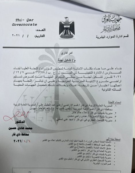 ذي قار تشكل لجنة لتسليم الأراضي الخاصة بمشاريع الأبنية المدرسية