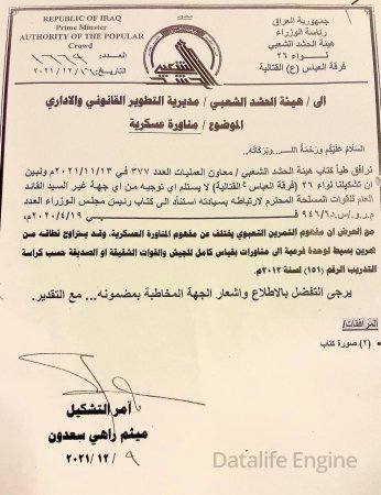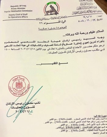 وبحسب الوثائق التي نشرها مصدر صحفي (29 كانون الثاني 2022)، فإن فرقة العباس القتالية، تلقت طلباً من رئاسة الأركان في الحشد الشعبي بالمشاركة في المناورة العسكرية، والحضور للاجتماع الخاص بالاستعداد لتلك المناورة.