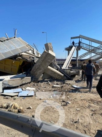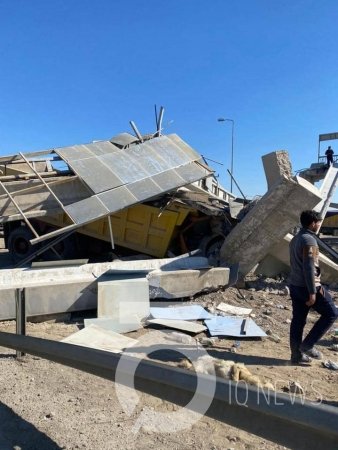 شاحنة تتسبب بسقوط جسر للمشاة وقطع طريق بغداد - صلاح الدين