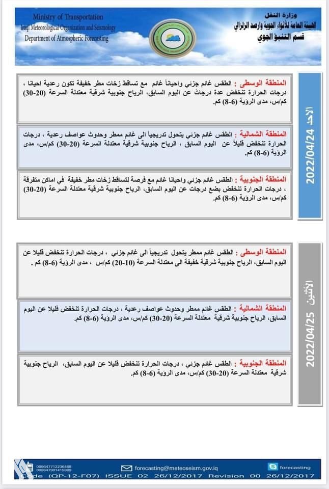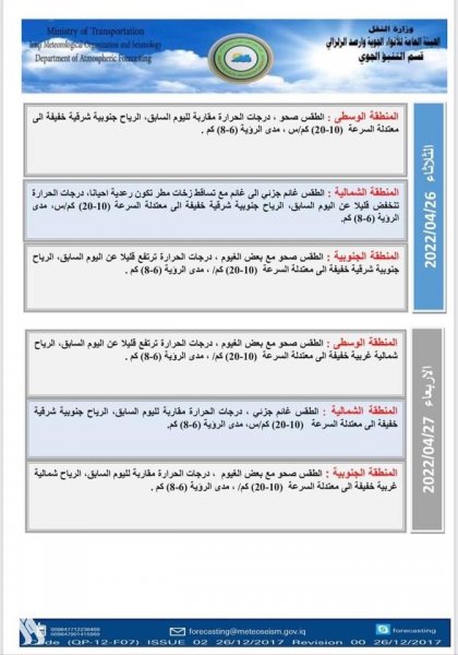 طقس العراق.. أجواء شتائية اليومين المقبلين