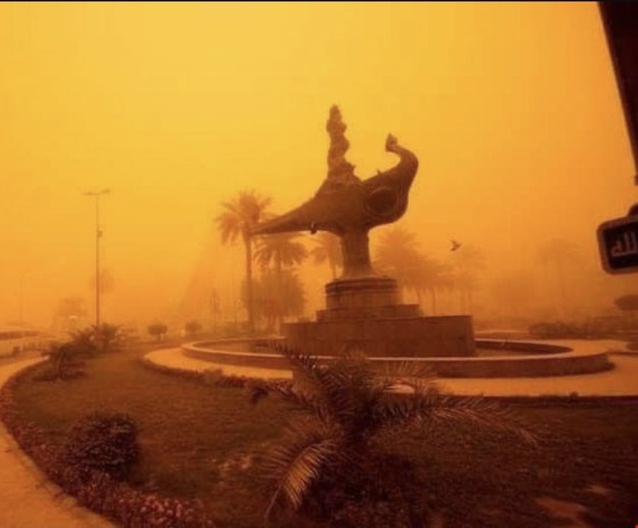 وتابعت، إنه "بسبب اندفاع كتلة هوائية باردة ينتج عنها فوارق حرارية وانخفاض درجات الحرارة بتطرف مابين السبت والأحد يصل لـ 8 درجات مئوية في بعض الأماكن"، لافتة إلى إن "مدن الوسط والفرات الأوسط وجنوب غرب البلاد هي الأكثر تعرضا لكثافة الغبار ولا يعني ذلك عدم شمول باقي المناطق بالغبار".أما عن التحذيرات بشأن الموجة، دعت الهيئة إلى "عدم السفر براً، وتوقف الرحلات يكون حسب حالة الطقس في المطارات"، كما إنه " على مرضى الحساسية والربو اخذ الاحتياطات اللازمة، عدم التعرض المباشر للغبار والتزام المنازل إلا للضرورة، مع الملاحظة انه ربما يكون هناك تغيير أو تقلبات في الحالة الجوية. ويوم الاثنين الماضي، تسببت عاصفة رملية قوية في العراق بإغلاق العديد من المدارس والجامعات والمكاتب وتعليق الرحلات الجوية في مطارات بغداد والنجف والسليمانية.وغطّت طبقات الرمال الصفراء المباني والسيارات المتوقفة في الشوارع وأثاث المنازل، في حين حجبت سحب الغبار السميكة الرؤية لمجرد بضعة أمتار قليلة.وضربت عاصفة رملية واحدة على الأقل العراق كل أسبوع على مدى الأسابيع القليلة الماضية، حيث كانت الأخيرة هي العاصفة الثامنة منذ منتصف نيسان/ ابريل الماضي، والتاسعة قادمة بحسب تحذير نشرة الأنواء الجوية.