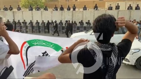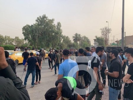 تجمع عشرات المحتجين أمام القنصلية التركية في منطقة الوزيرية وسط بغداد، الخميس(21 تموز 2022).