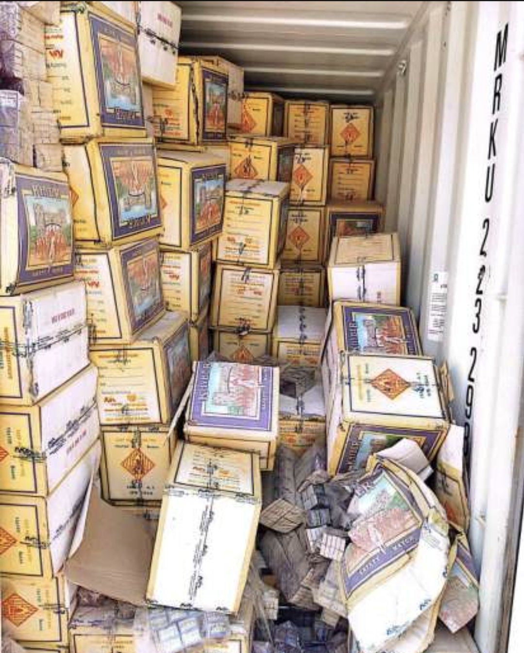 وأضاف، أن "الشاحنات كانت محملة (أسلاك نحاس وملفات، بطاريات سيارات، مشروبات غازية فريز، سجاد ميكانيك، دجاج مجمد ) مخالفة للشروط والضوابط الاستيرادية".