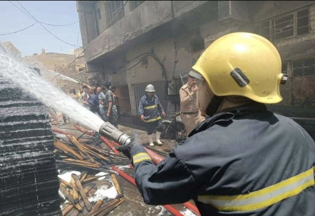 فرق الدفاع المدني تخمد حريقاً بمعمل للنجارة وسط بغداد وتنقذ 5 عمال