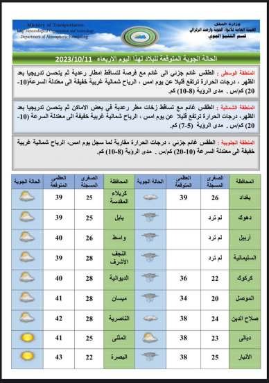انخفاض بالحرارة وأمطار متفرقة.. إيضاح مفصل بطقس العراق للأيام المقبلة