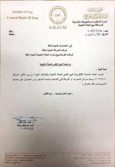 وأضاف انه "وبهذا الاجراء سيسهل على المواطن شراء الدولار بانسيابية ونؤكد على ادخال البيانات في الحقول بصورة صحيحة لتتم عملية الحجز بنجاح"