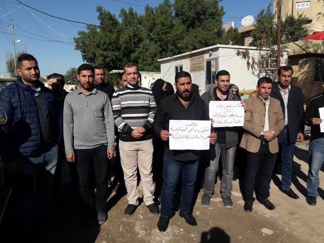 نظم عدد من موظفي مديرية تربية محافظة ديالى، اليوم الاثنين، وقفة احتجاجية؛ بسبب تأخر رواتبهم.