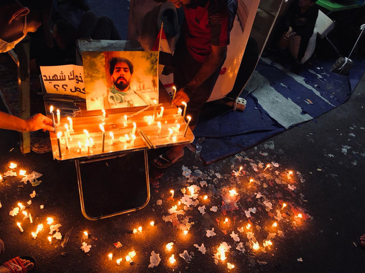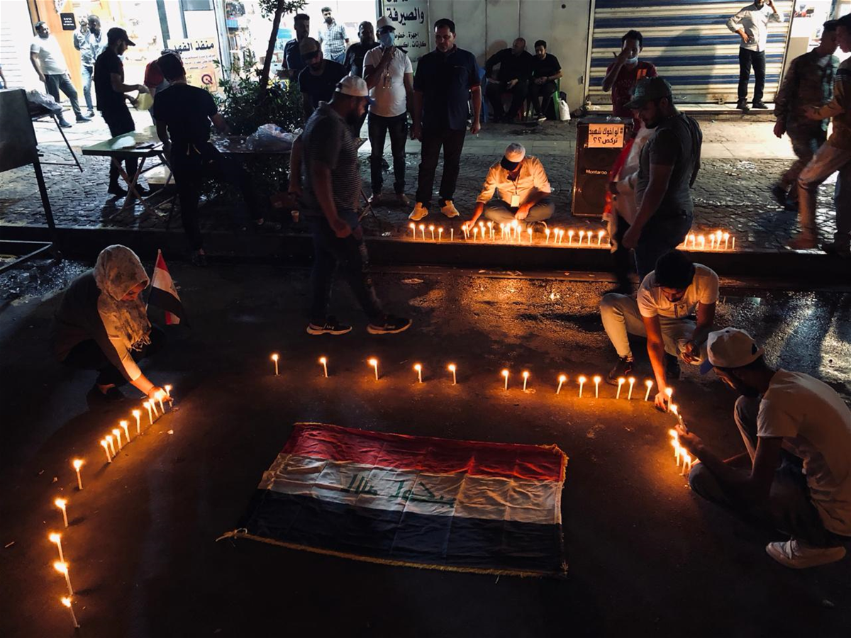 تنشر وكالة من كربلاء الخبر ، صوراً لقيام متظاهرين في ساحة التحرير وسط بغداد بايقاد الشموع على ارواح الشهداء.